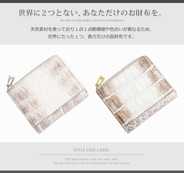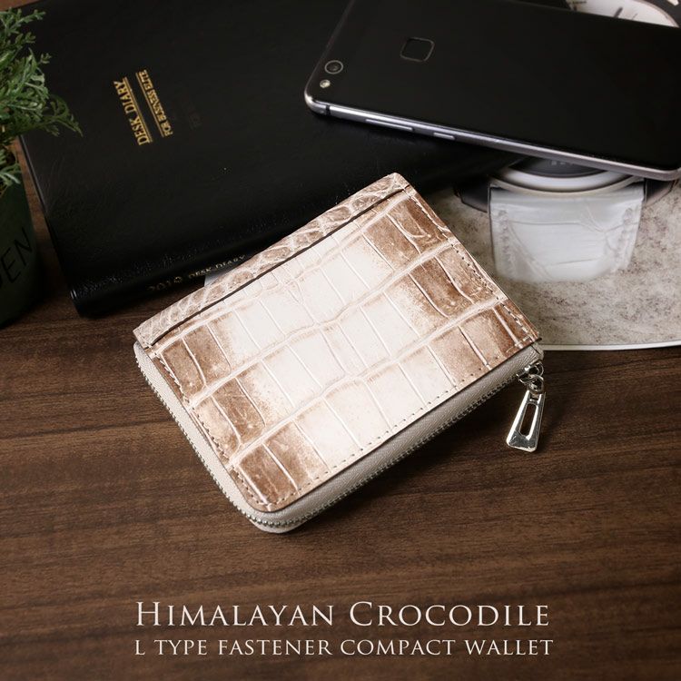 ヒマラヤ クロコダイル L字ファスナー コンパクト 財布 マット加工 メンズ 小さい キャッシュレス【ネコポスで送料無料】 4FA