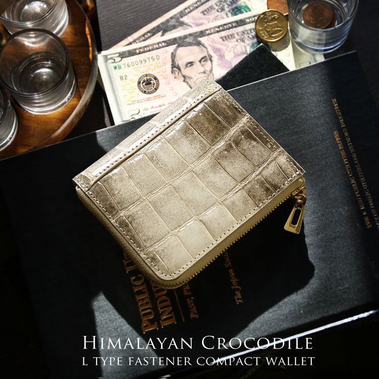 高級感溢れる存在感で魅了するヒマラヤクロコダイルを使用、L字ファスナーミニ財布。