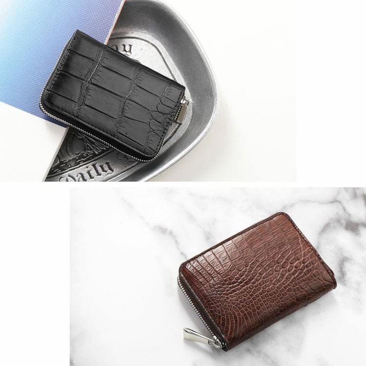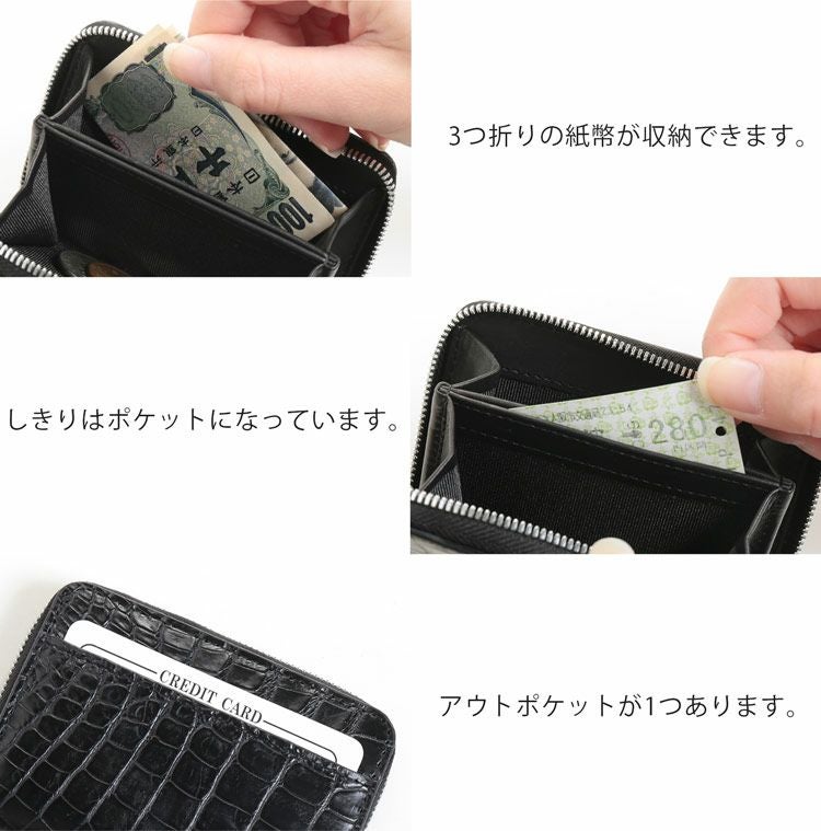 | 商品名:クロコダイル ラウンドファスナー ミニ財布 アウトポケット付き メンズ |