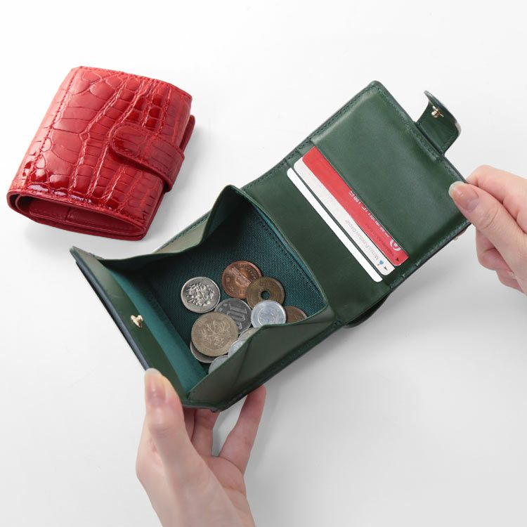 美しく輝くシャイニングクロコダイルを使用したコンパクト財布。