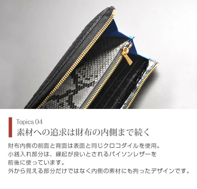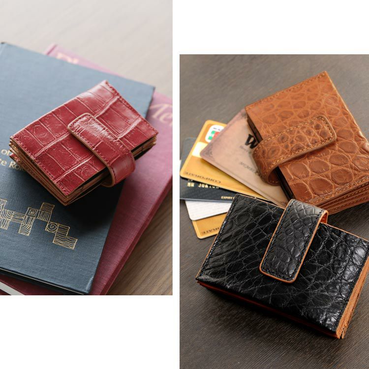海外の有名ブランドでも取り扱いのあるクロコダイルの革は古くから変わることのない価値で愛され、大人の男性のステータスをあらわす代表的なもの。人気のファスナー財布、二つ折り財布の財布類から、名刺入れやカード入れなどの革小物も多数取り扱いしています。