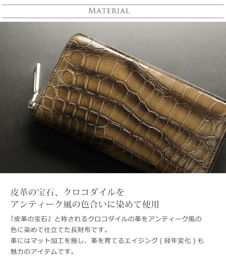 他の画像を見る exotic leather アンティーク風スペイン染め クロコダイル ラウンドファスナー メンズ 長財布 マット加工/シルバー金具 4FA ¥ 36,300 税込 (0件) お気に入りに登録する