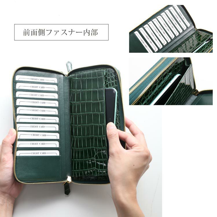 他の画像を見る exotic leather クロコダイル 長財布 メンズ マット加工 ラウンドファスナー 一枚革 センター取り グリーン ブラック(06001758-mens-1r) ¥ 63,800 税込 (0件) お気に入りに登録する
