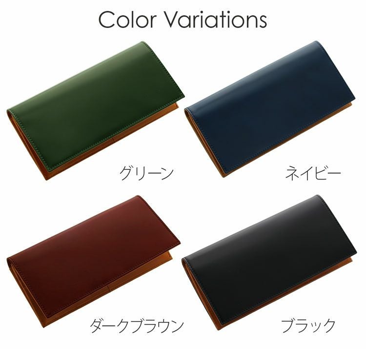 シックな男ならではの表情を持った、コードバンレザーの日本製二つ折り長財布。