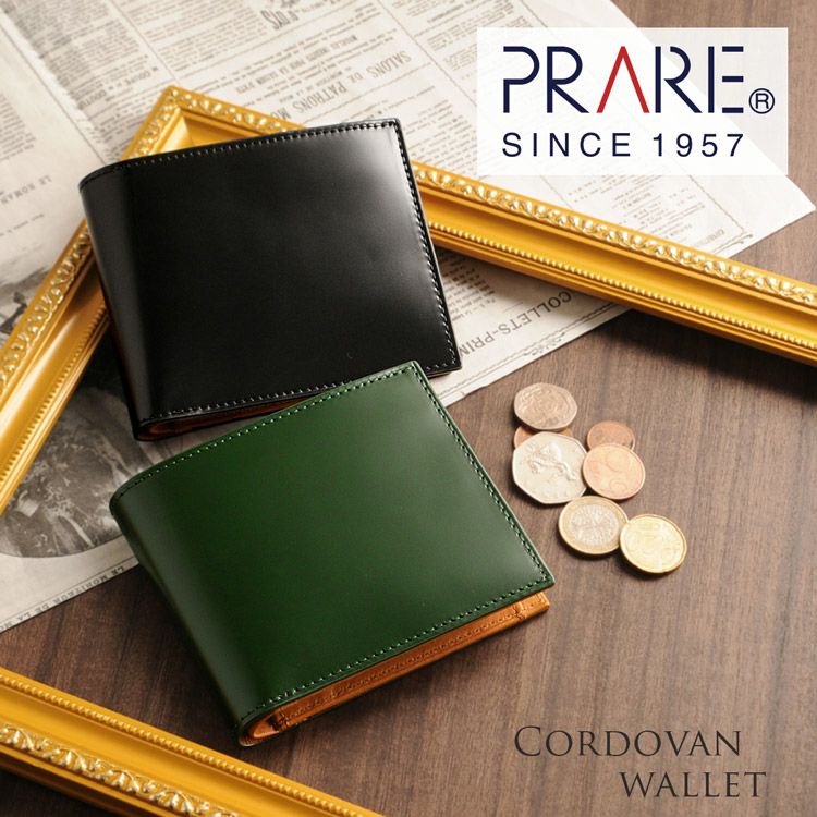 日本製 二つ折り 財布 コードバン 小銭入れ 付き プレリー メンズ PRAIRIE ブランド 希少 レザー 本革 二つ折り財布 折り財布 メンズ財布 プレゼント ギフト 卒業 記念品 ギフト