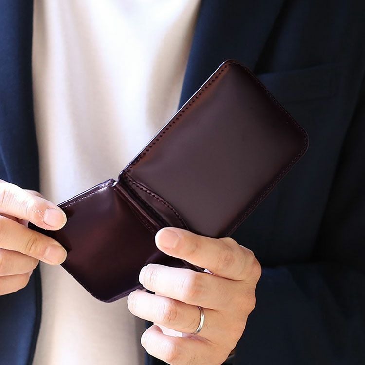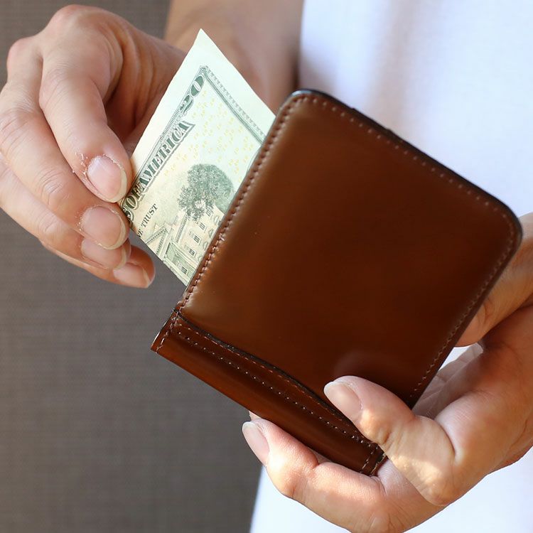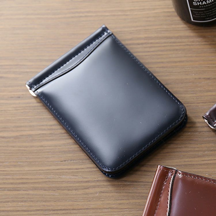 無駄な装飾の無いシンプルなデザインで、コードバンの素材感が生きたマネークリップ