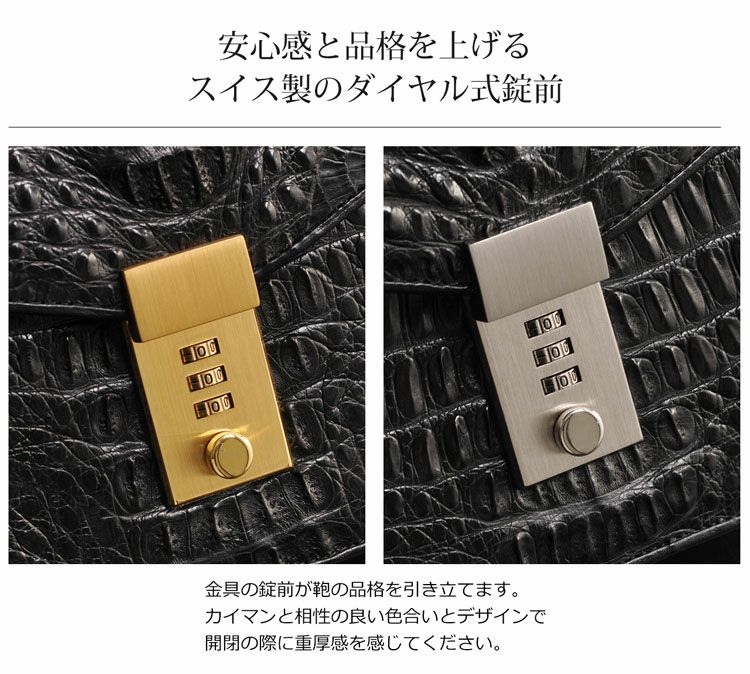 他の画像を見る exotic leather カイマン マット 加工 メンズバッグ ダイヤルロック付き ハード手 ネイビー/ダークブラウンブラウン/ブラック 4FA ¥ 52,800 税込 (0件) お気に入りに登録する