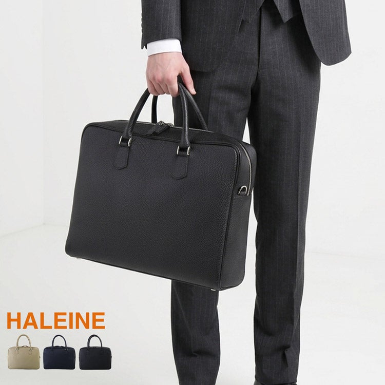 ブリーフケース 本革 ビジネスバッグ A4が入る ハンドバッグ 2way 日本製 姫路レザー 牛革 HALEINE 自立 大容量 底鋲付き ダブルファスナー A4 ショルダーベルト付き メンズ 通勤 仕事 オフィス 上品 上質 レザー (07000726-mens-1r)