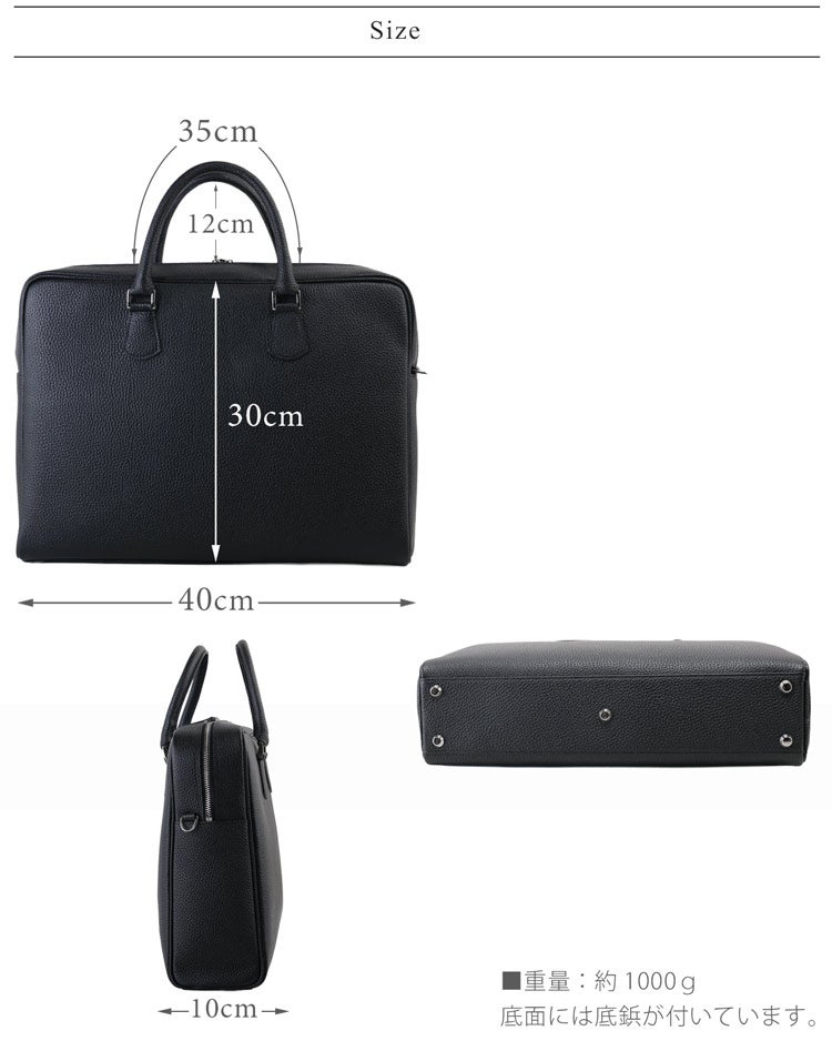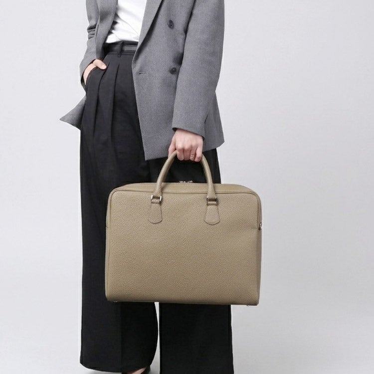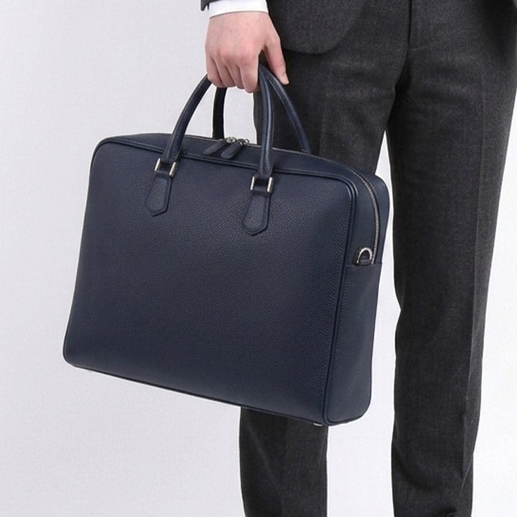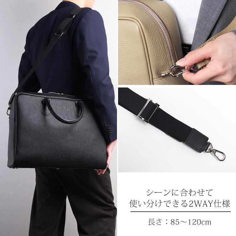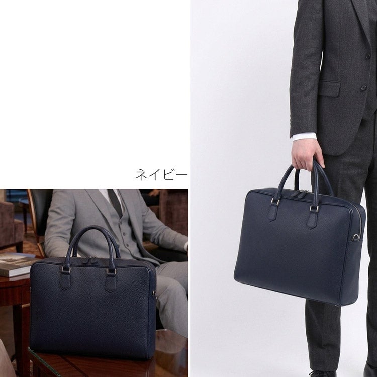 A4書類がスマートに収まるサイズ感で、男性のビジネススタイルに似合う端正な印象。
