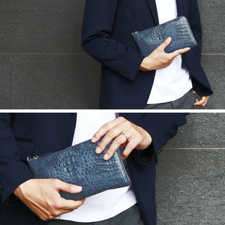 薄型デザインでスマートに持てる、極上カイマンレザーを使用したクラッチバッグ。