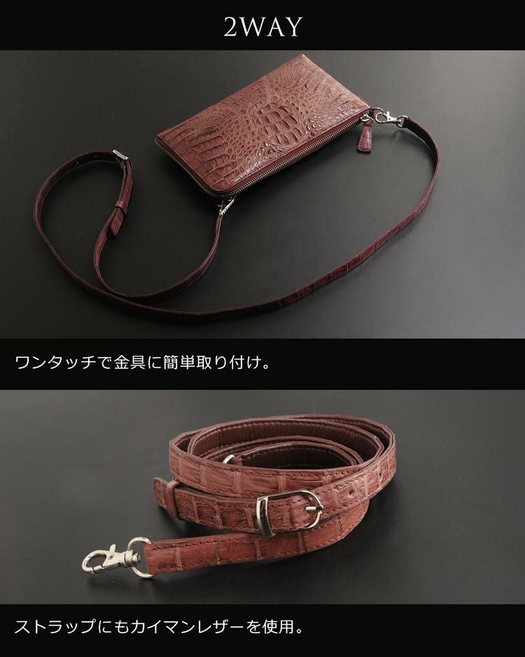 天然皮革 エキゾチックレザー カイマン クラッチ ショルダー バッグ 2WAY 財布 マット メンズ 肩掛け ナナメ掛け 鞄 小さい 本革 レザー プレゼント ギフト 父 お財布バッグ スリム 薄い ギフト mensbag