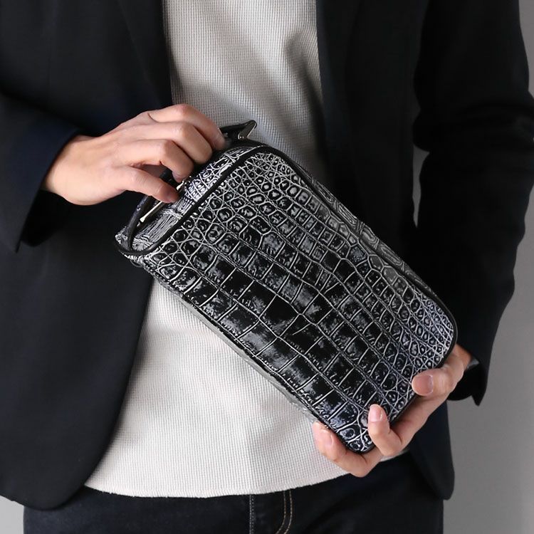 希少なナイルクロコダイルを贅沢に「センター取り」で使用した。妥協なき日本の職人技が光るセカンドバッグです。