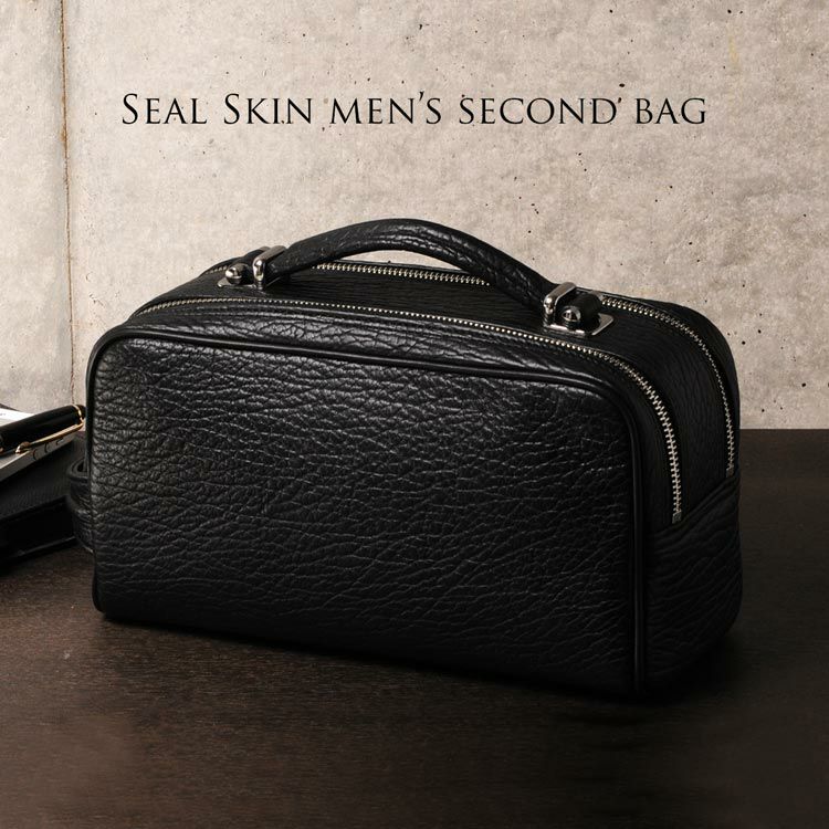| 商品名:アザラシ革 セカンドバッグ ダブルファスナー / メンズ / marelli |