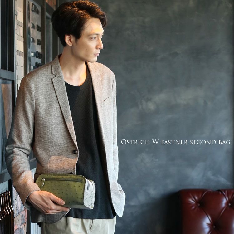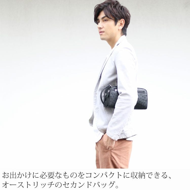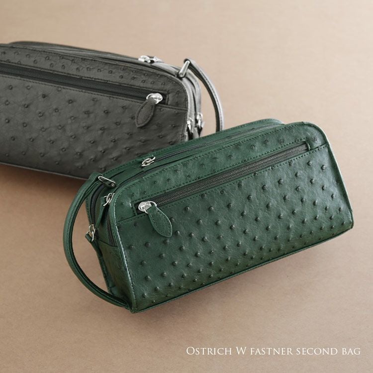 オーストリッチ セカンド バッグ Wファスナー / メンズ 4FB