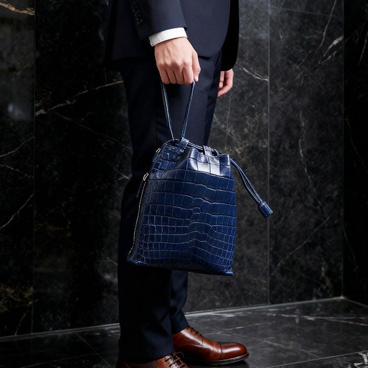 ナイルクロコダイル 巾着 バッグ メンズ 2way 保証書付き