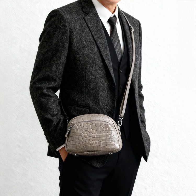 クロコダイルやパイソン、オーストリッチなど大人の雰囲気を醸し出す高級皮革をつかったメンズ本革ショルダーバッグ。休日につかえるボディバッグ風からビジネスシーンで使えるA4も入るショルダーバッグなど多数の本革ショルダーバッグをご用意しています。