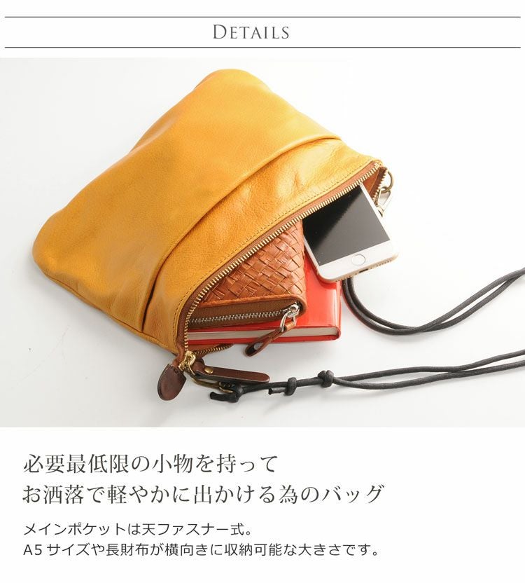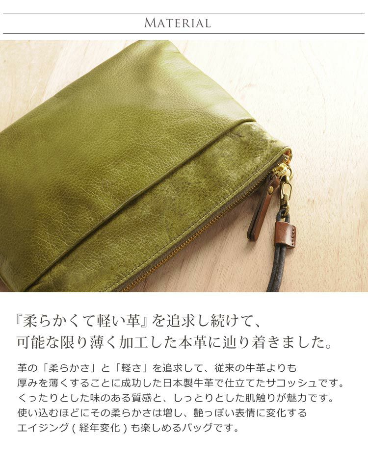 くったりとした柔らかな日本製の牛革で仕立てた小さなショルダーバッグ(サコッシュ)。