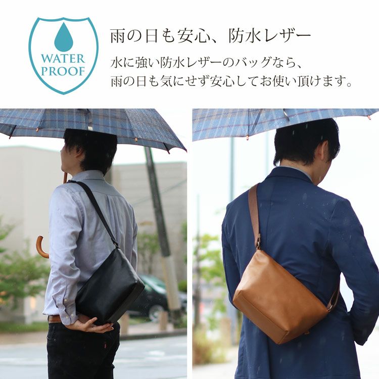 防水レザーを使用し、機能性とコンパクトさを兼ね備えたショルダーバッグ。