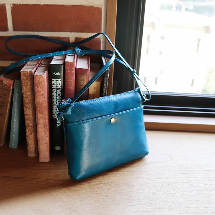 サコッシュ 小さい かばん メンズ 牛革 ブルー