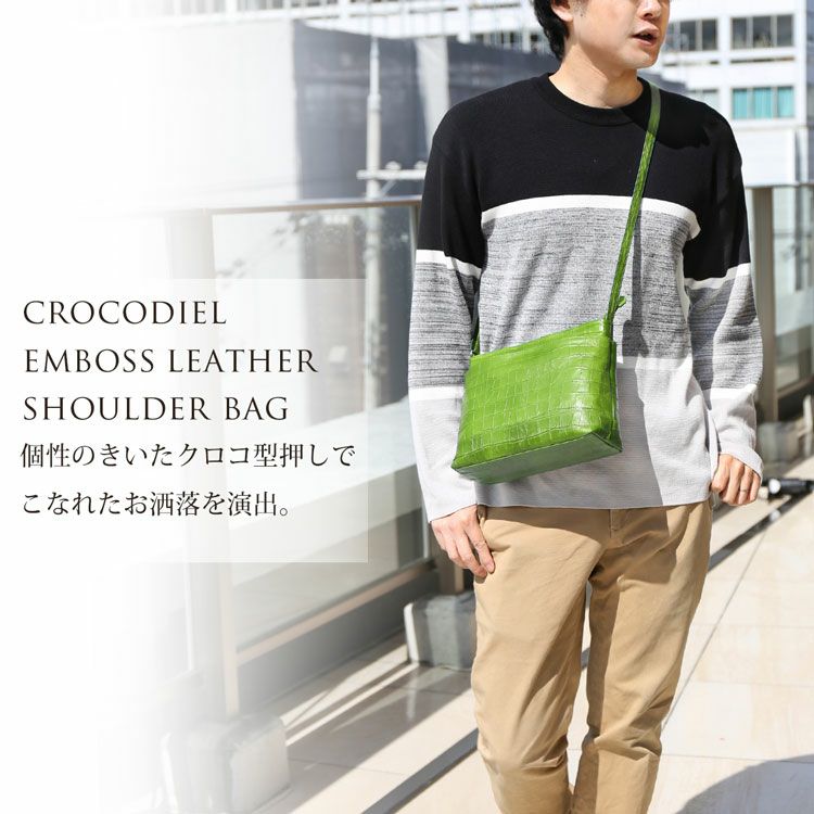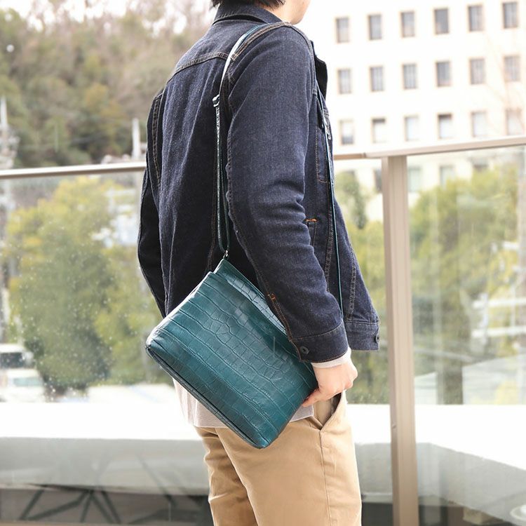 型押しクロコがお洒落なメンズショルダーバッグ。