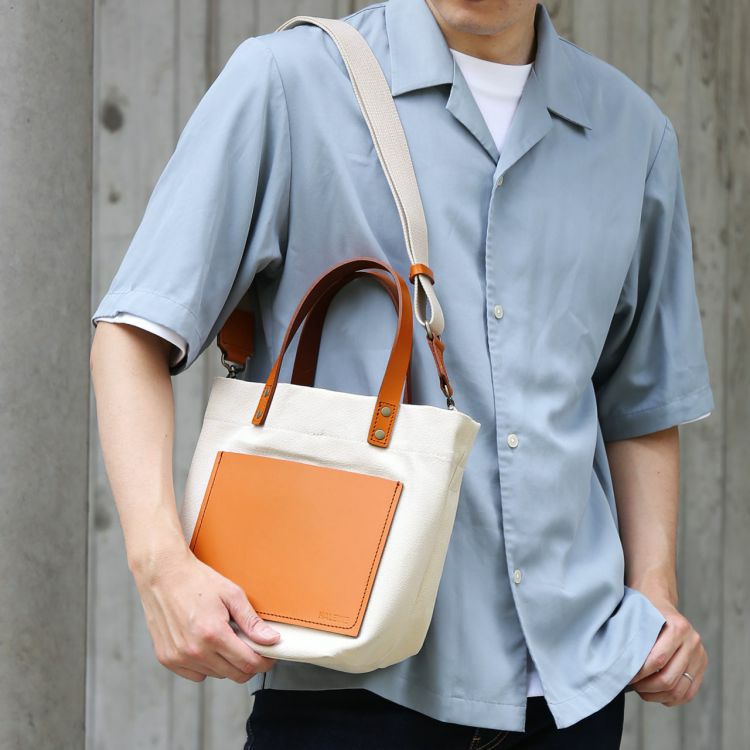 ヌメ革を組み合わせることで高級感をプラスしたトートバッグ。
