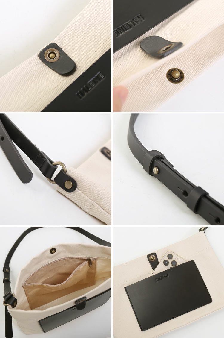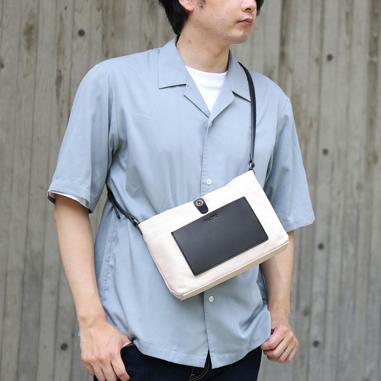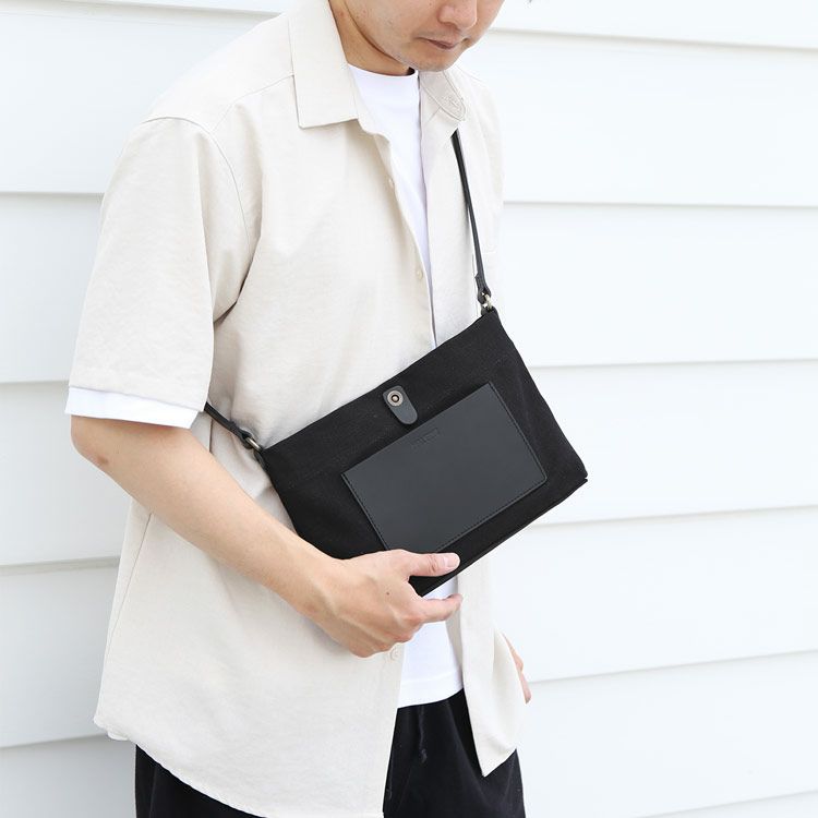 サコッシュ メンズ HALEINE ブランド レザー ブランド キャンバス 生地 ヌメ革 キャンバス地 ショルダーバッグ 横型 革 本革 革サコッシュ 帆布 大きめ マチ付き マチあり ブラック 黒 男 プレゼント ギフト mensbag