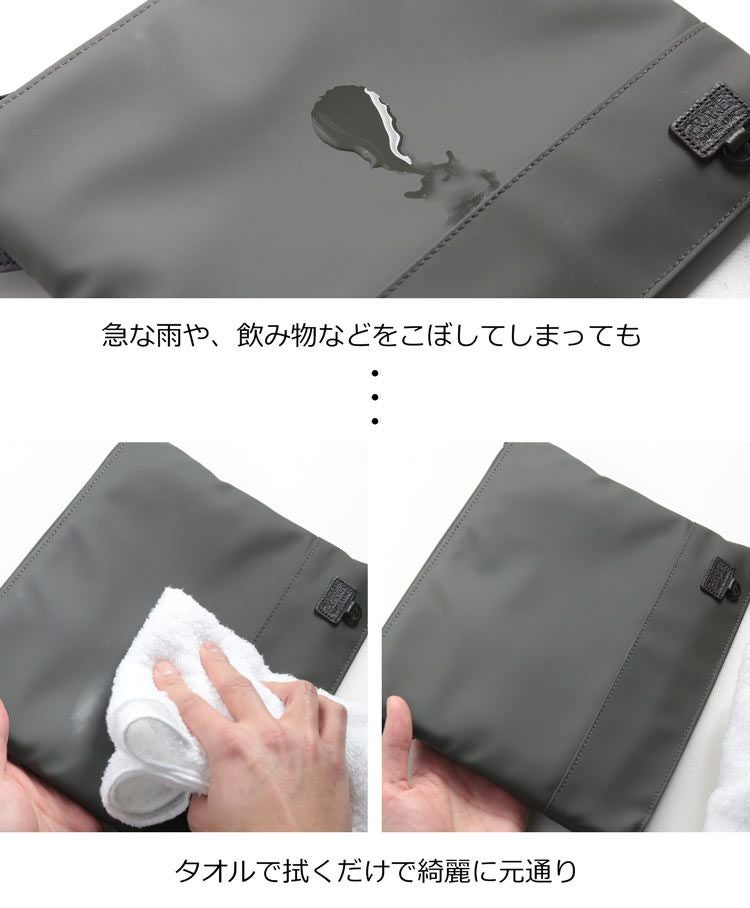 重量は軽く、傷や雨にも強い、ポリウレタン加工素材を使用しており、