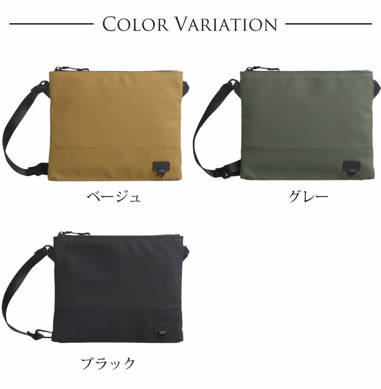 レザー部分は防水レザー、ファスナーには止水ファスナーを採用した、雨に強いサコッシュです。