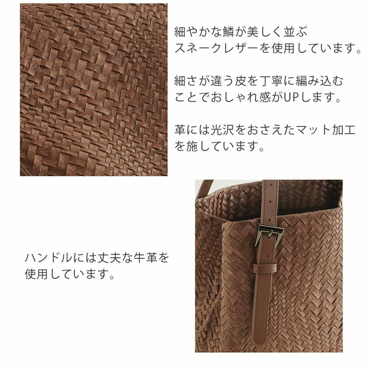 柔らかく軽いのが特徴のスネークレザーを使った大きなサイズのトート。