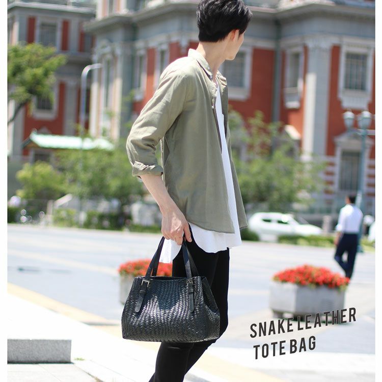 トートバッグ メンズ 本革 スネーク レザー メッシュ 蛇皮 軽量 a4 大きめ ベージュ ダークレッド ブラウン ブラック バッグ ヘビ柄 編み込み イントレチャート プレゼント ギフト mensbag