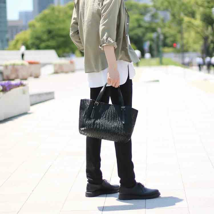 細さが違う皮を丁寧に編み込んだ、おしゃれなメッシュバッグです。