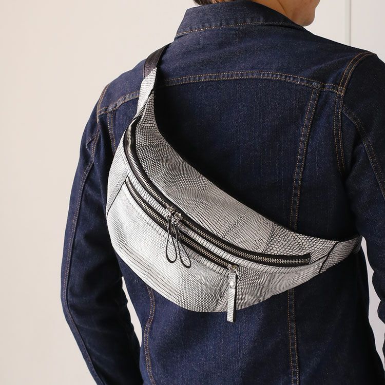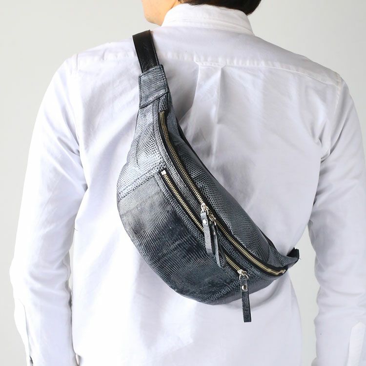 ※キーワード:日本製ボディバッグ 本革 トカゲ 蜥蜴 レザー エキゾチックレザー ウエストポーチ ショルダーバッグ 肩掛け カジュアル ファニーパック