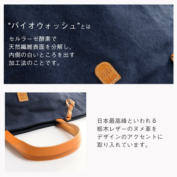 バイオウォッシュ加工を施した帆布を使用しています。