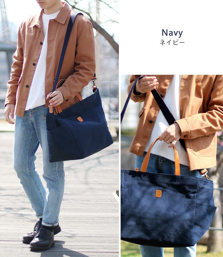 帆布 トートバッグ 日本製 メンズ 大きめ ショルダーベルト付き キャンバス生地 ヌメ革のハンドル A4 1泊2日 ボストンバッグ ギフト mensbag