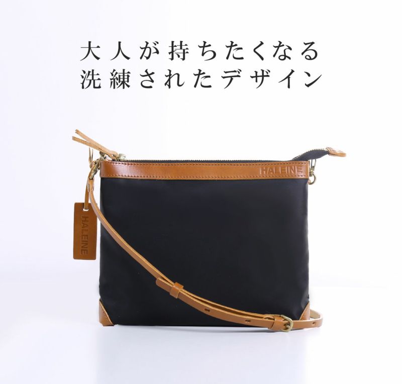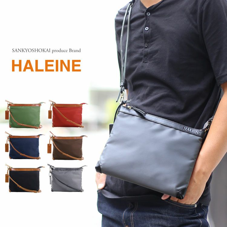 HALEINE 日本製 ナイロン 栃木レザー たつのレザー サコッシュ メンズ 横型 ショルダー バッグ ボディバッグ 牛革 本革 ギフト mensbag