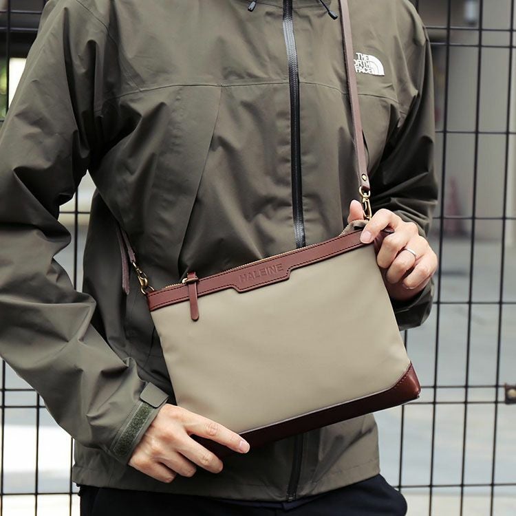 ■大人が持ちたくなる! お洒落でアクティブなサコッシュ。 ※傷に強いのであって全くつかないものではございません。 キャンプや公園に行ったら気を付けていても枝で引っかけたり、 鍵と接触して傷がついてしまった! などの経験はありませんか? いつでもたくさん使いたいけどアクティブに活動すると傷だらけ・・・ とっても悲しいですよね。 でも安心してください!このバッグで使用している素材は・・・ 鍵でひっかいてもみてもご覧の通り傷が目立ちません! 本体部に使用されているこの素材なら水を弾くから汚れてしまってもハンカチでサッと拭き取るだけ。 ※長時間置いた状態にしますとシミになる場合がございます。汚れてしまった場合水拭き後乾いた布で拭きとってください。 色んな素材で試作を繰り返しましたが、 なかなか理想とする素材とは出会えませんでした。 構想から1年半!やっと理想とする素材を見つけることができました。 それは、高純度のウレタン樹脂を使用した強化ポリウレタン! マットでゴムライクな表面は、まるでウエットスーツのような質感で、 検査機関で様々な試験を通ったタフな素材。 摩擦による傷がつきにくい耐摩耗性。 汚れもサッと拭き取れる耐水性。 夏の日差し・日焼けにも強い耐光性。 PU独特の経年による劣化(ひび割れ、べたつき、変色等)に対する耐久性もあります。 仕切りのないメインポケット 【内側】 ・フリーポケット×2 ・ファスナーポケット×1 【外側】 ・ファスナーポケット×1 お出かけに必要なアイテムをサクサク収納。 見た目以上に収納力があり、 長財布やA5サイズのノートなども入る大きさなので使い勝手も抜群です。 ショルダーベルトは金具で簡単に取り外し。 7段階で調節可能なデザイン。 ■サコッシュは流行アイテムから定番アイテムへ。 サコッシュとは元々自転車乗りや登山家が愛用していた軽量のショルダーバッグ。 その無駄の無いデザインや機能性から今やトレンドの枠を超えた "手放せない"アイテムとして注目されています。 近年のキャッシュレス化の流れから、人々の持ち物は小さく少なくなっているため、 軽量かつ小型なサコッシュは、今の時代とニーズに合ったバッグであると言えます。
