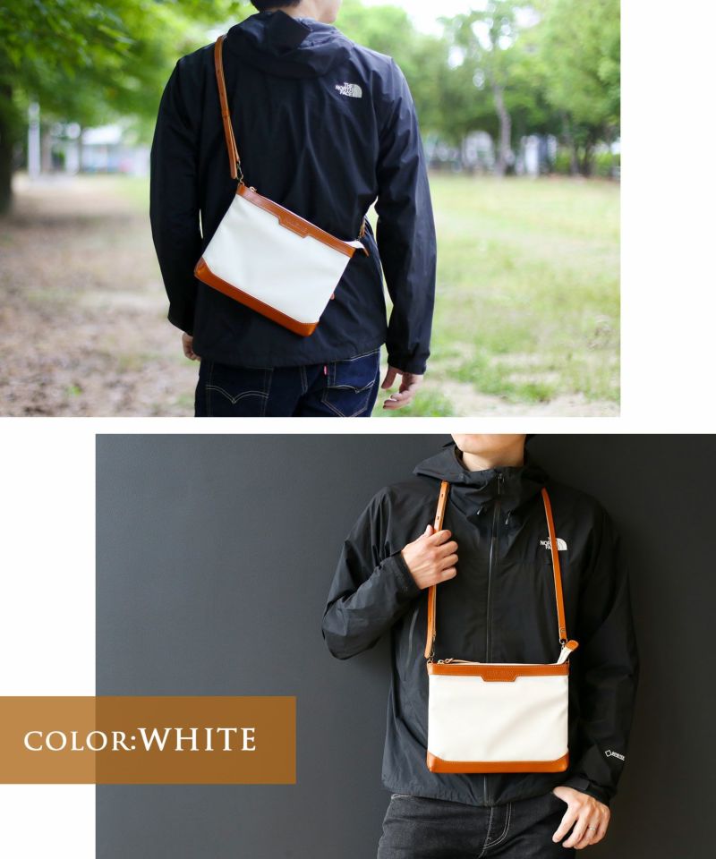 傷に強い 汚れに強い サコッシュ ヌメ革 コンビ 牛革 ブランド HALEINE ショルダー シンプル 旅行 バッグ 肩掛け 薄型 アウトドア フェス 軽量 メンズ 男性(07000521-mens-1) mensbag
