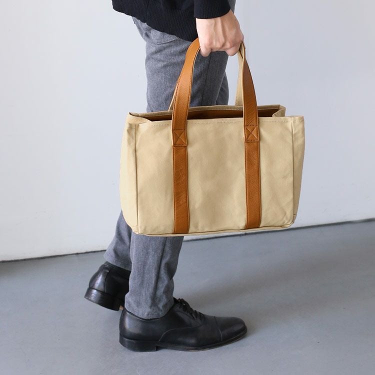 旅行やジムなどなにかと荷物が多くなりがちが時にすっきり収納できるトートバッグ。