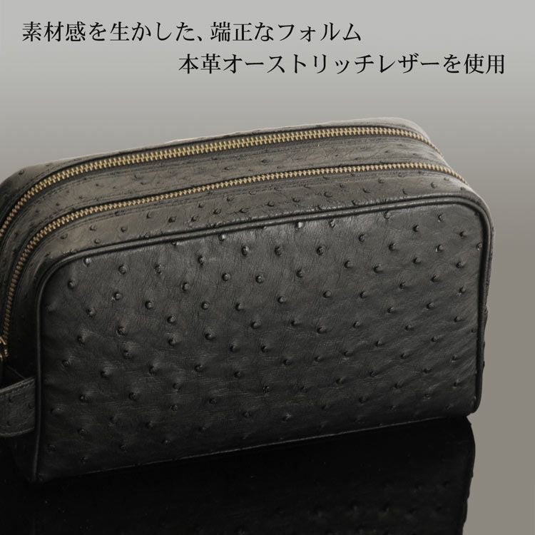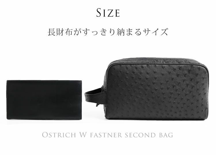 高級素材のオーストリッチを贅沢に使用した、日本製Wファスナーセカンドバッグ。