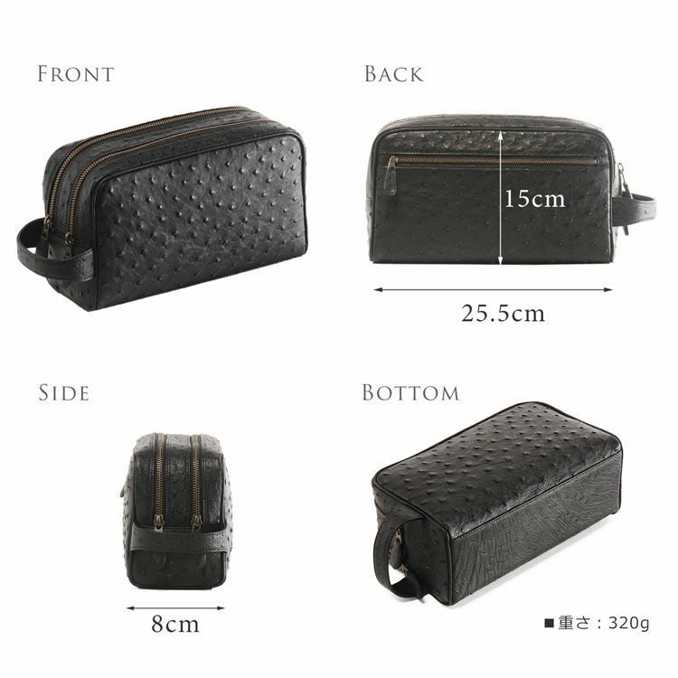 | 商品名:日本製 オーストリッチ セカンド バッグ Wファスナー メンズ |