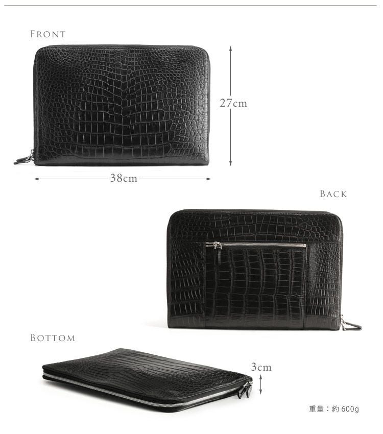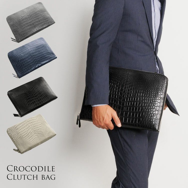 | 商品名:クロコダイル クラッチバッグ マット 加工 センター取り メンズ A4対応 パソコン ケース ヘンローン ブルーグレー/ネイビー/ブラック |