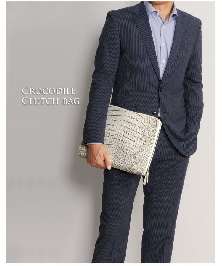 スマートに持てるクロコダイルの薄型クラッチバッグ。