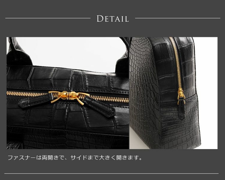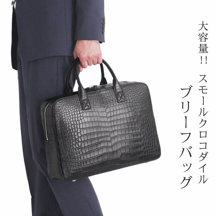 スモールクロコダイルを贅沢にセンター取りで使用したメンズバッグ。