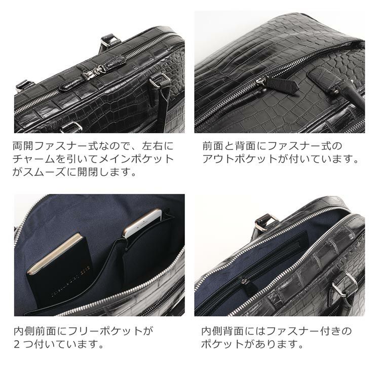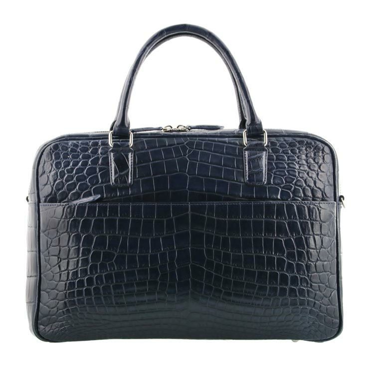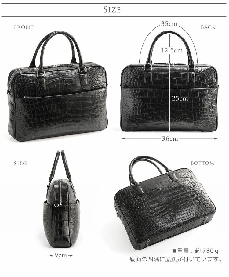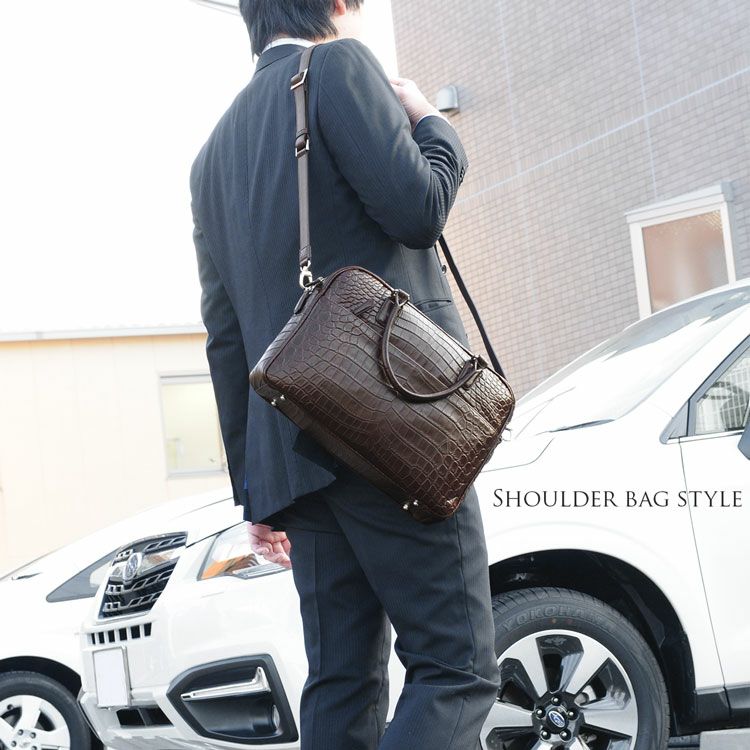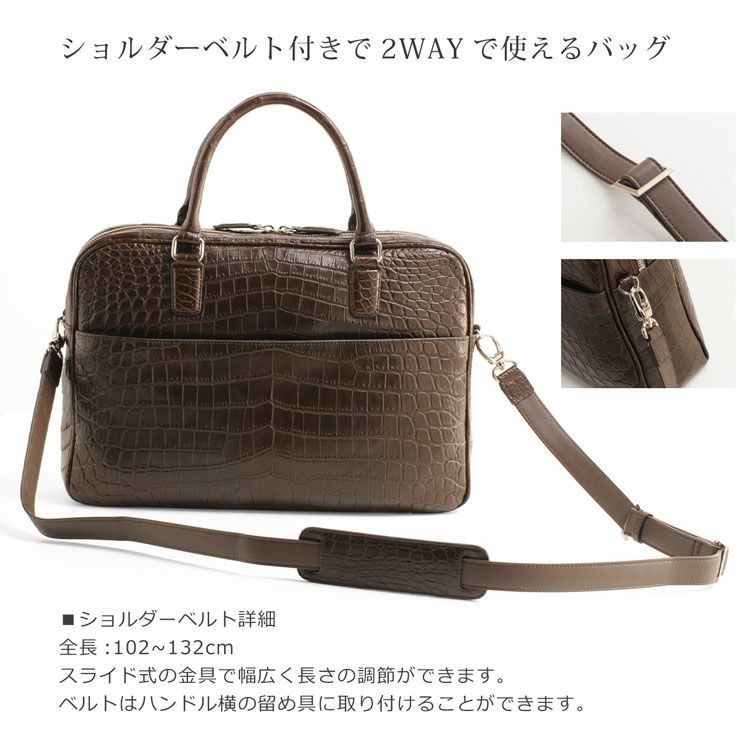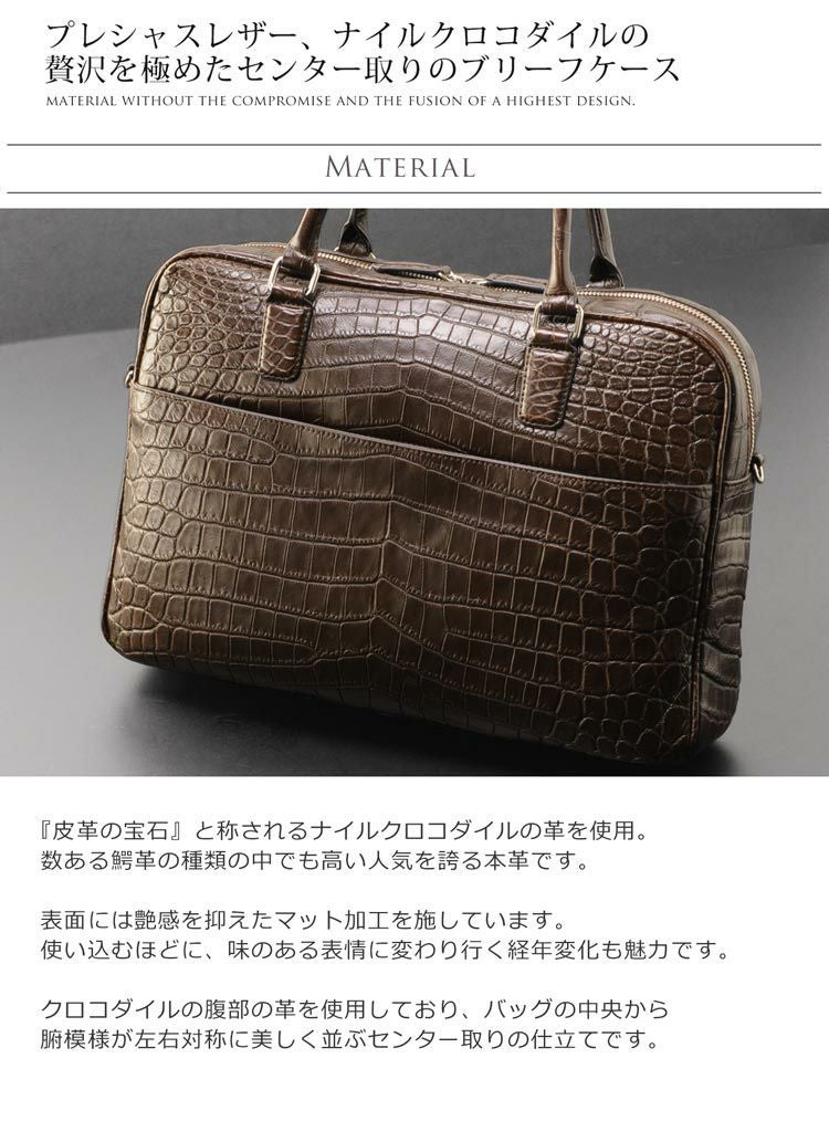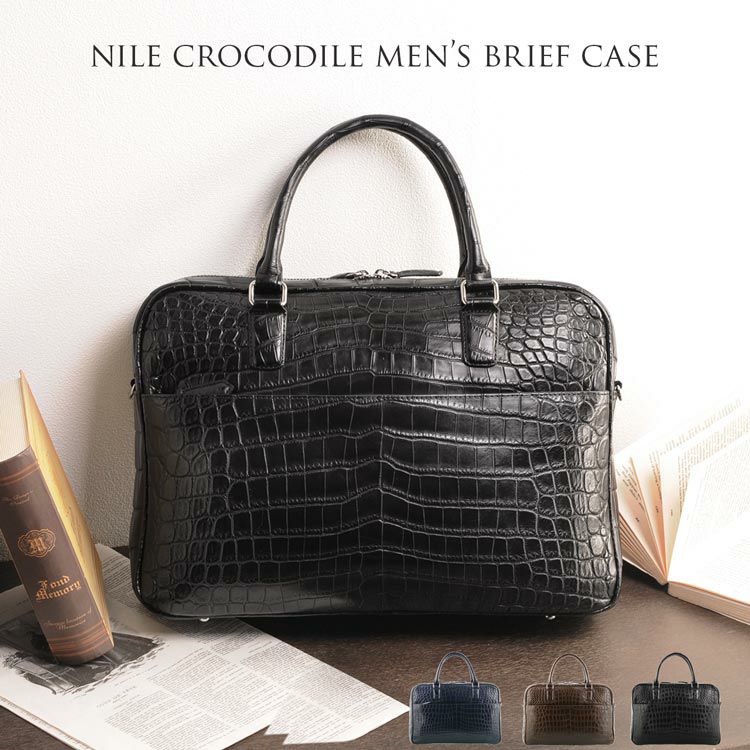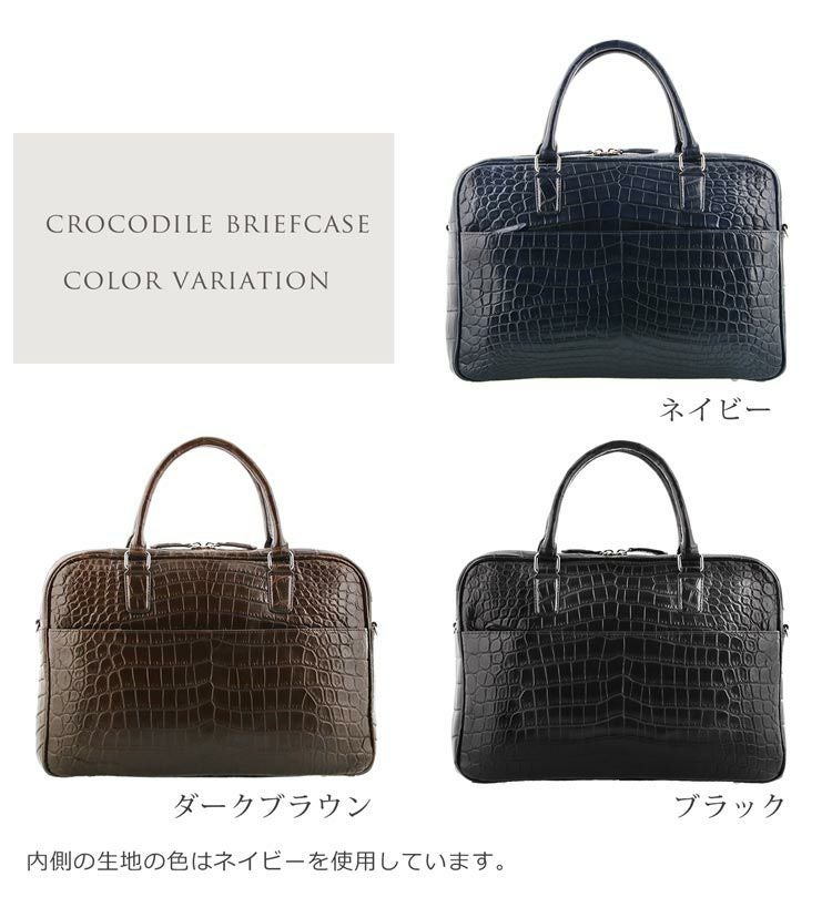 | 商品名:クロコダイル ブリーフケース マット加工 センター取り 2WAY 仕様 A4対応 メンズ ネイビー/ダークブラウン/ブラック |