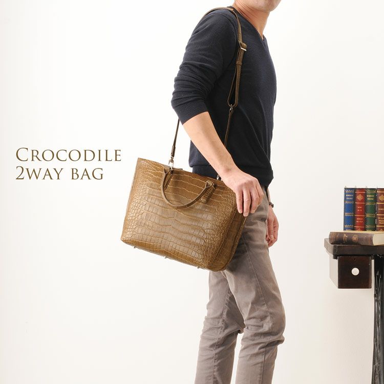 スモール クロコダイル ポロサス トートバッグ マット加工 2WAY メンズ A4 対応『クロコダイル保証書付き』 4FA
