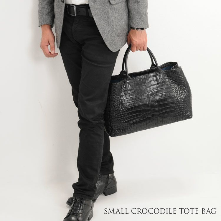 | 商品名:スモール クロコダイル トートバッグ メンズ 大容量 A4 対応 マット 加工 ポーチ 付き ブラック 内装 羊革 本革 軽い 柔らかい |