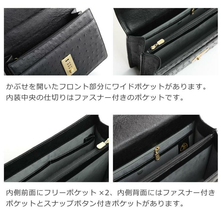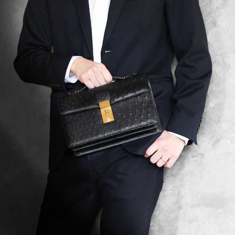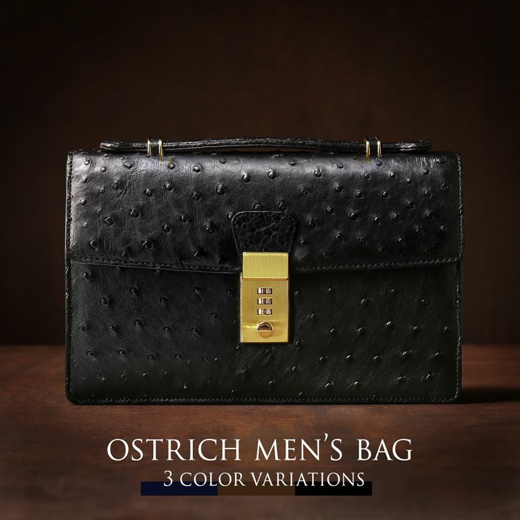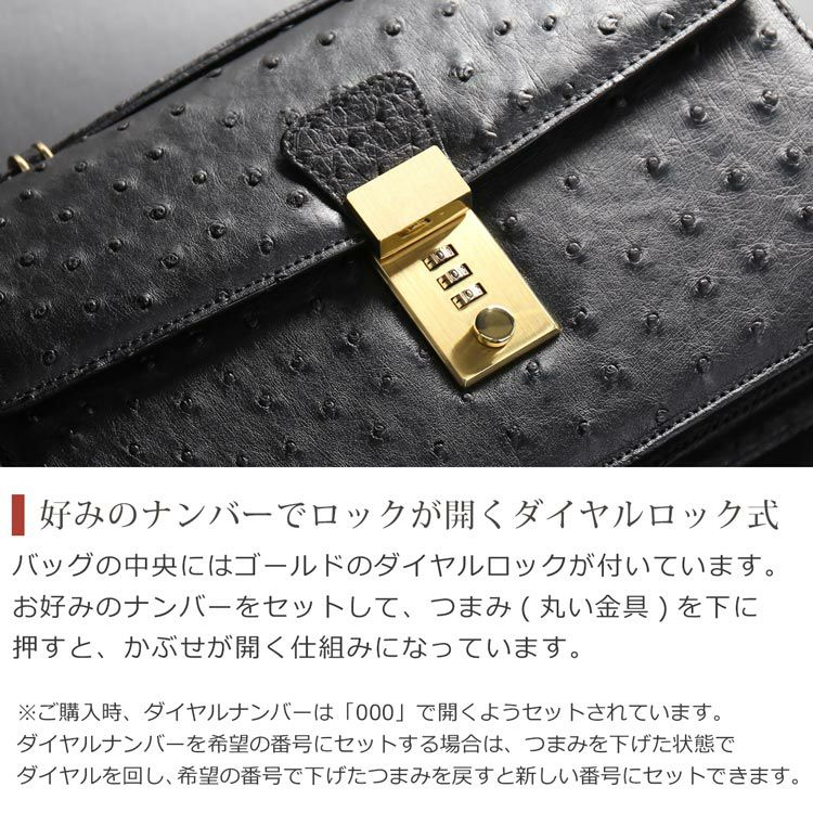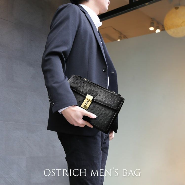 オーストリッチ メンズ セカンドバッグ ダイヤルロック式 日本製 フルポイント(3878r)