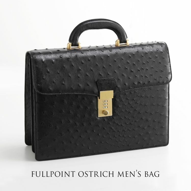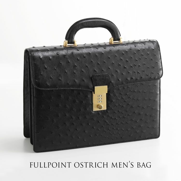 天然皮革 エキゾチックレザー オーストリッチ メンズ バッグ 32cm ダイヤルロック フルポイント 日本製 本革 ハード手 ブラック ビジネスバッグ 仕事 通勤 セカンドバッグ ハンドバッグ プレゼント ギフト mensbag