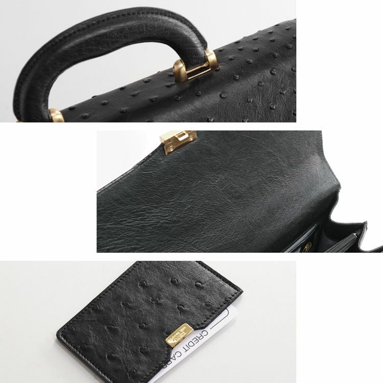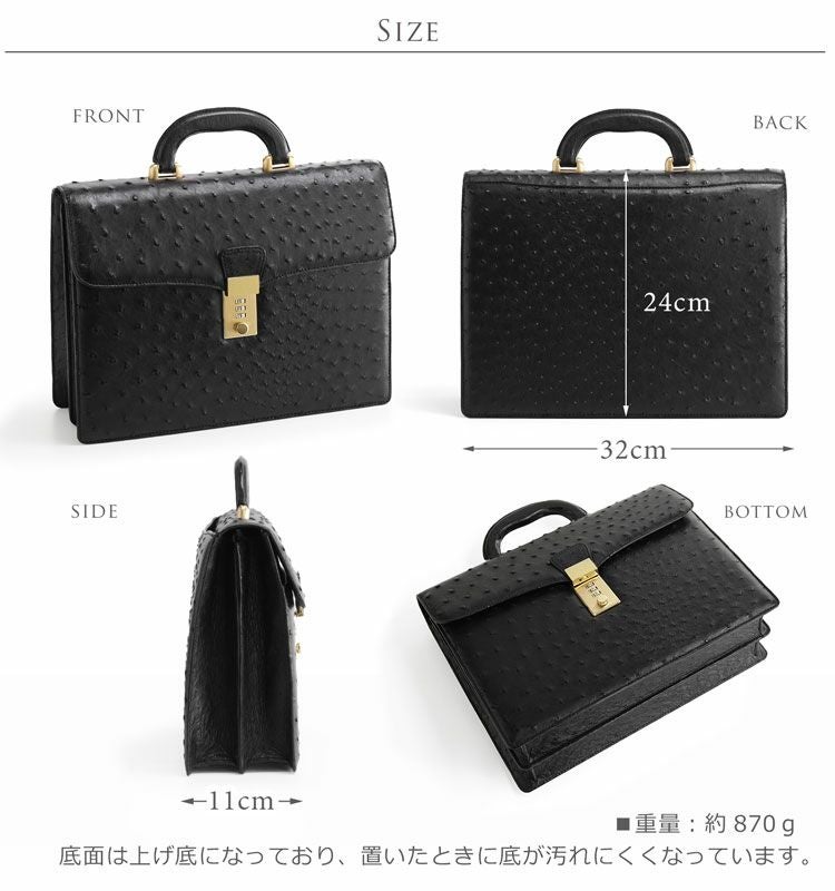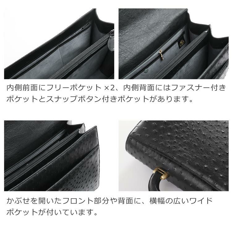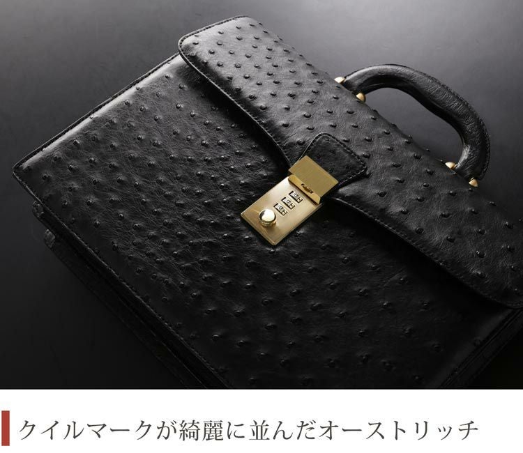 | 商品名:オーストリッチ ブリーフケース メンズ バッグ 32cm ダイヤルロック フルポイント 日本製 本革 ハード手 ブラック |