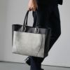 シボ型押しをした牛革で仕立てた大きなトートバッグです。